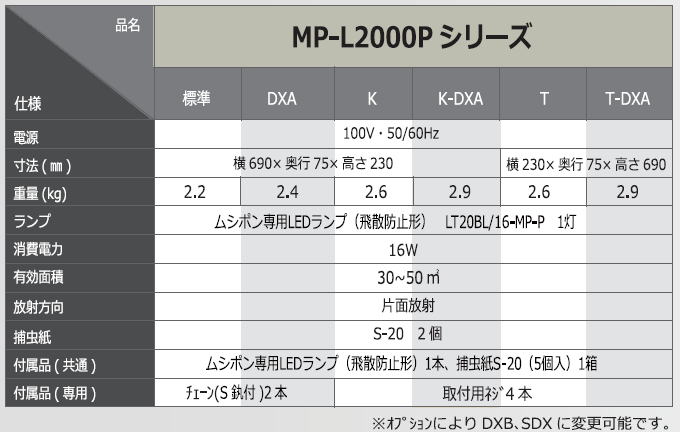 ムシポンMPX-2000SDXは片面型で誘虫灯の光が外に漏れず、誘虫面は捕虫紙を目隠ししていつも清潔に見える目隠しタイプです